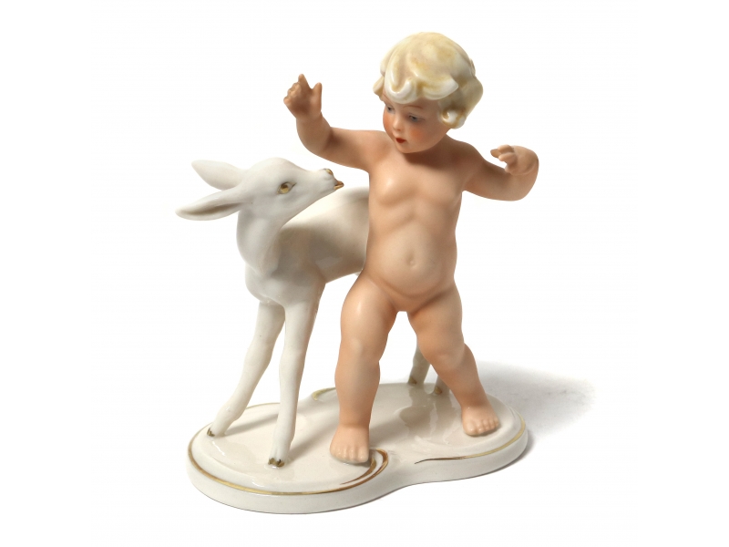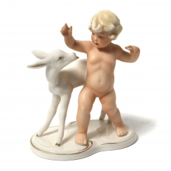 379689 - Путти с олененком, высота 14,5 см, основание 11,8 х 7,5 см, Германия, Goebel Schaubach Kunst