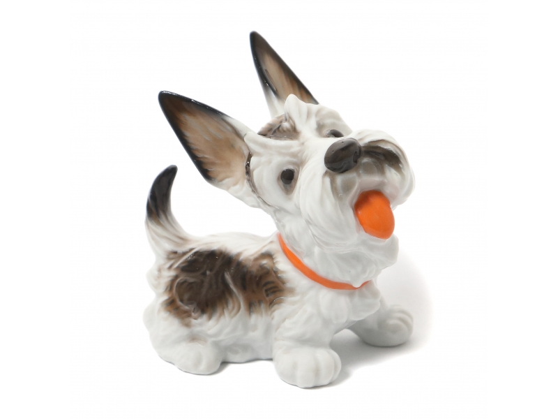 Фарфоровая фигура (статуэтка) "Шотландский терьер". Ручная подглазурная роспись.