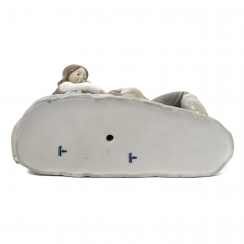 Фарфоровая фигура (статуэтка) "Застигнут врасплох" (Девушка и спящий пастух с ягненком). Ручная подглазурная роспись.