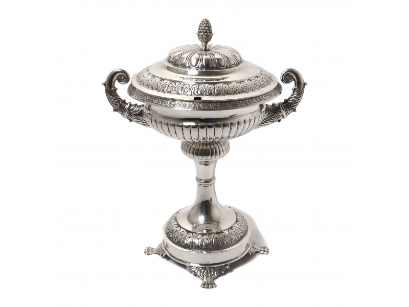 Серебряная сахарница или ваза с крышкой.