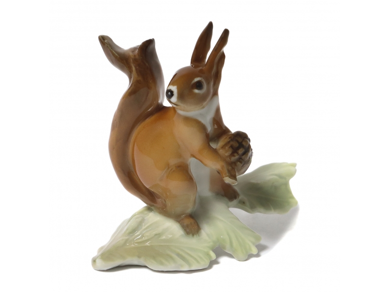 380121 - Белка с орешком на еловой ветке, высота 8 см, Германия, Hutschenreuther_SquirrelWithNut