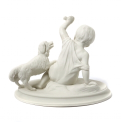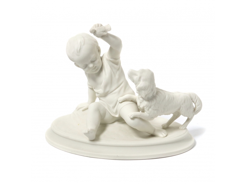 Фигура (статуэтка) из бисквитного фарфора (париан) "Мальчик с собакой (Pojke med hund)".