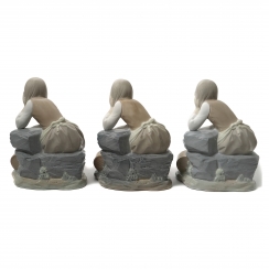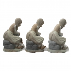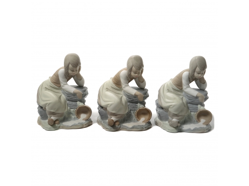 Три фарфоровые фигуры (статуэтки) "Девочка пролившая молоко". Ручная подглазурная роспись.