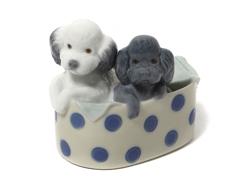 Фарфоровая фигура (статуэтка) "Пара щенков пуделей". Ручная подглазурная роспись.