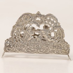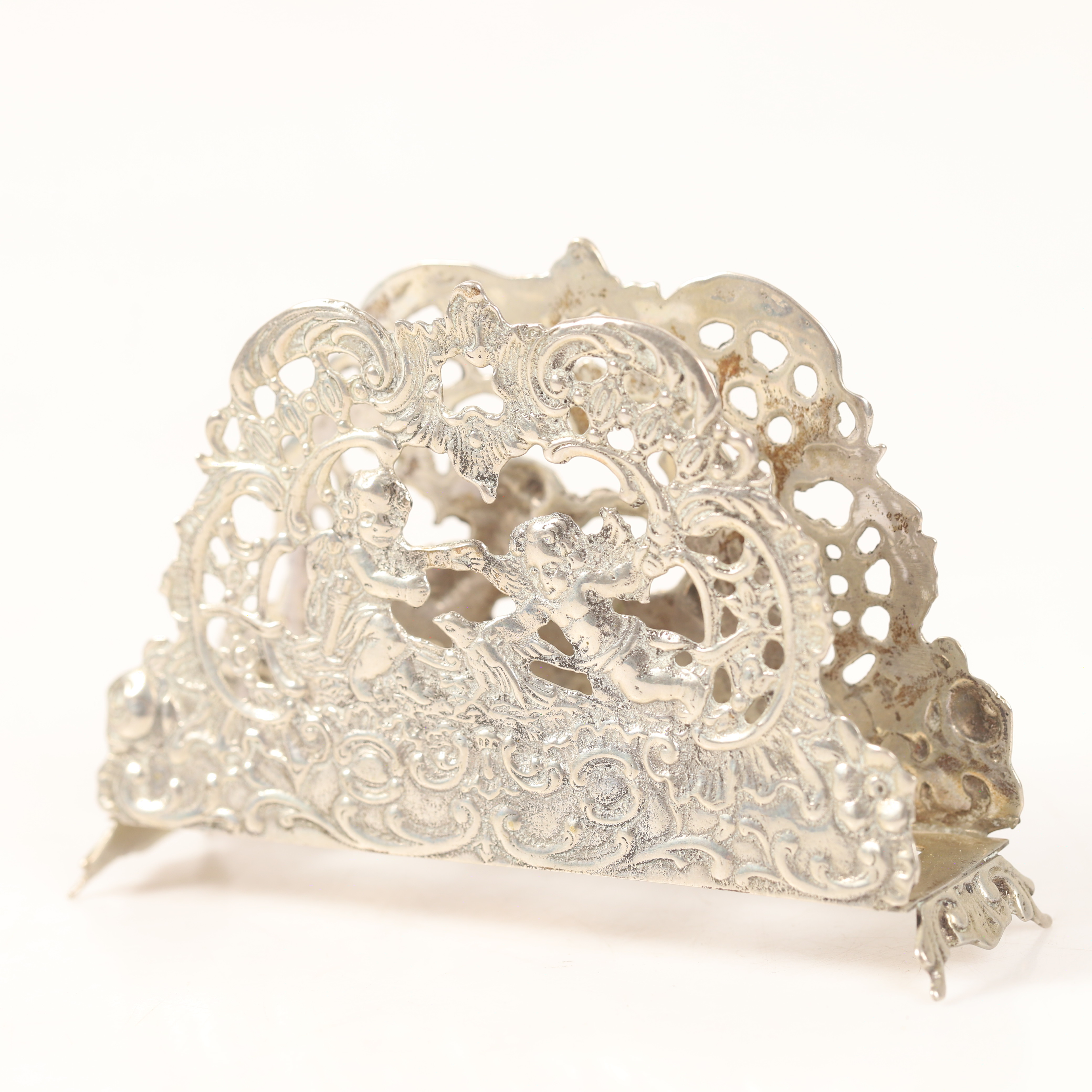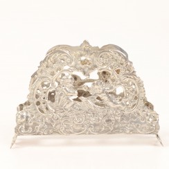 Серебряная подставка для салфеток (салфетница), декорированная ангелами.