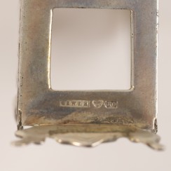 Длина: 11 см, ширина: 3 см, высота: 7,5 см. Вес: 74 грамма серебра 830 пробы. =============================== Silver napkin holder, decorated angels.