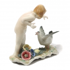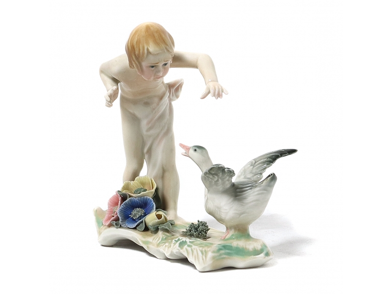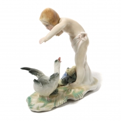 Фарфоровая фигура (статуэтка) "Девочка с гусем". Ручная подглазурная роспись.