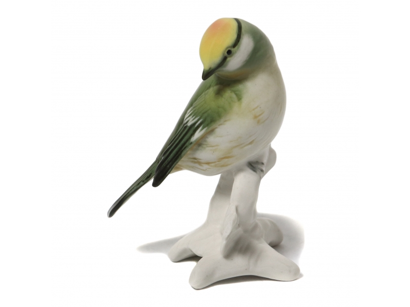 Фарфоровая фигура (статуэтка) "Королек на ветке". Ручная подглазурная роспись.