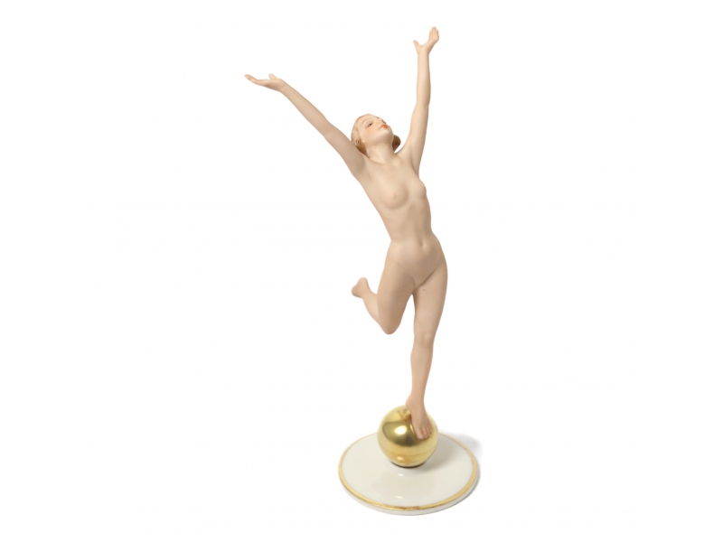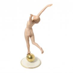 Фарфоровая фигура (статуэтка) "Обнаженная девушка на шаре". Ручная роспись.