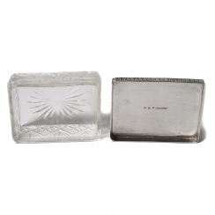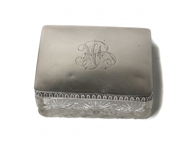 Хрустальная шкатулка с серебряной крышкой.
