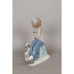 Мальчик - клоун с саксофоном и щенок, высота 26 см, максимальная длина 24 см, ширина 14 см, Испания, Lladro