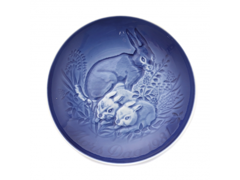 Тарелка первого сорта. Без сколов, повреждений и без реставраций. ================================ Wall porcelain plate "Hare with Leverets" (Hare med killing) from a series of "Mother's Day".