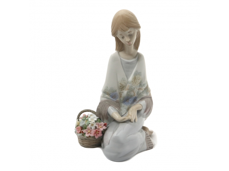 383459 - Девушка с корзиной цветов, высота 18 см, длина 13 см, ширина 11 см, Испания, LLadro |