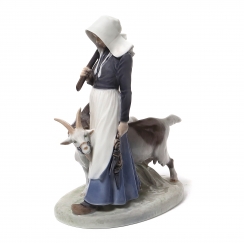 Фарфоровая фигура (статуэтка) "Девушка с козами". Ручная подглазурная роспись.