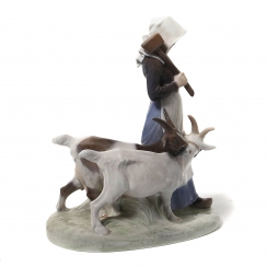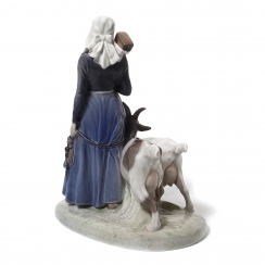 Фигура производилась также после объединения фабрик Royal Copenhagen и Bing & Grondahl (1985-1989) под брендом Royal Copenhagen, номер модели: 069. ================================= Porcelain figurine "Girl with goats". Hand-painted underglaze.
