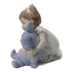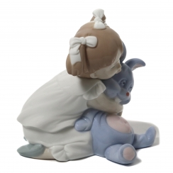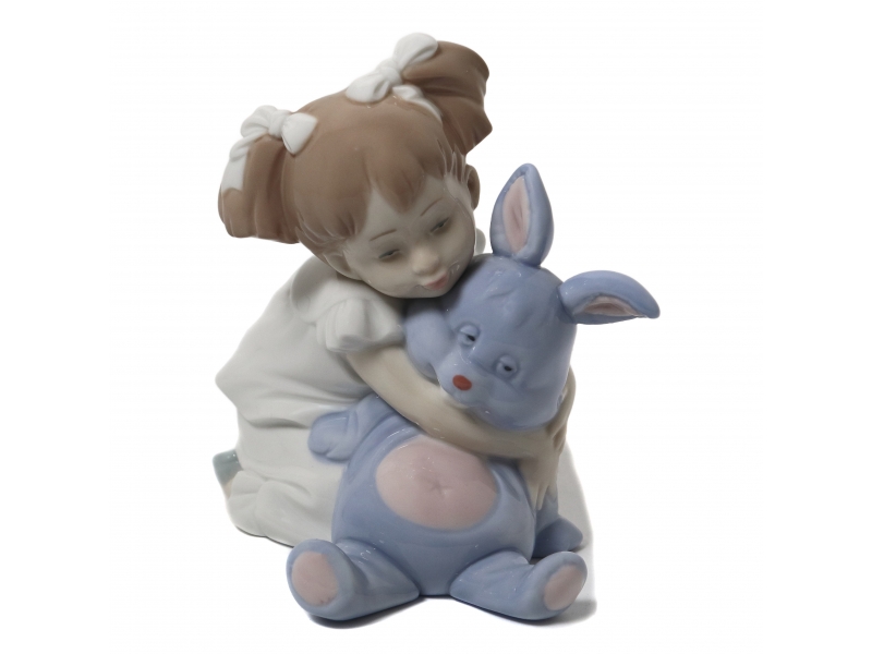 Фарфоровая фигура (статуэтка) "Как сильно я тебя люблю!" (Девочка обнимает зайчика). Ручная подглазурная роспись.