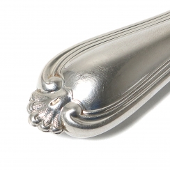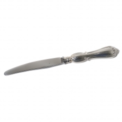 Длина: 21 см. Общий вес ножа с серебряной ручкой и стальным лезвием: 76 граммов, серебро 830 пробы. ============================ Dinner knife with silver handle and steel blade. Pattern "Olga".