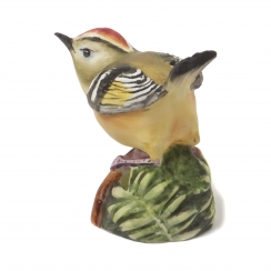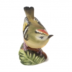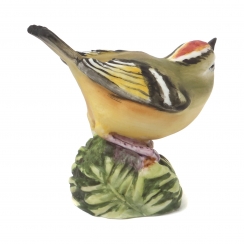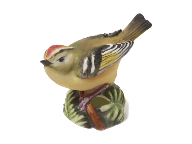Фарфоровая фигура (статуэтка) "Желтоголовый королёк на еловой ветке". Ручная роспись.