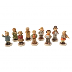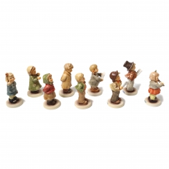 Без сколов, повреждений и без реставраций. ============================ Children's Choir - a collection of nine porcelain figurines on a stage stand: "Dirigentin Melody", "Bitte im Rhythmus Keeping Time", "Singt mit! Clear As A Bell", "Steadfast Soprano", "Too Shy To Sing", "Hitting The High Note", "Fischer Sänger LamplIght Caroler", "Erstes Solo First Solo" and "Erste Geige First Violin".