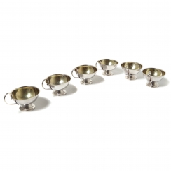 Height: 4.2 cm, diameter of the top 6.5 cm. Volume: 45 ml. Total weight: 193 grams of silver 830 fineness.
