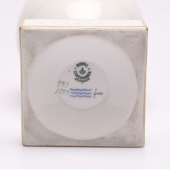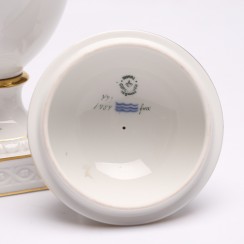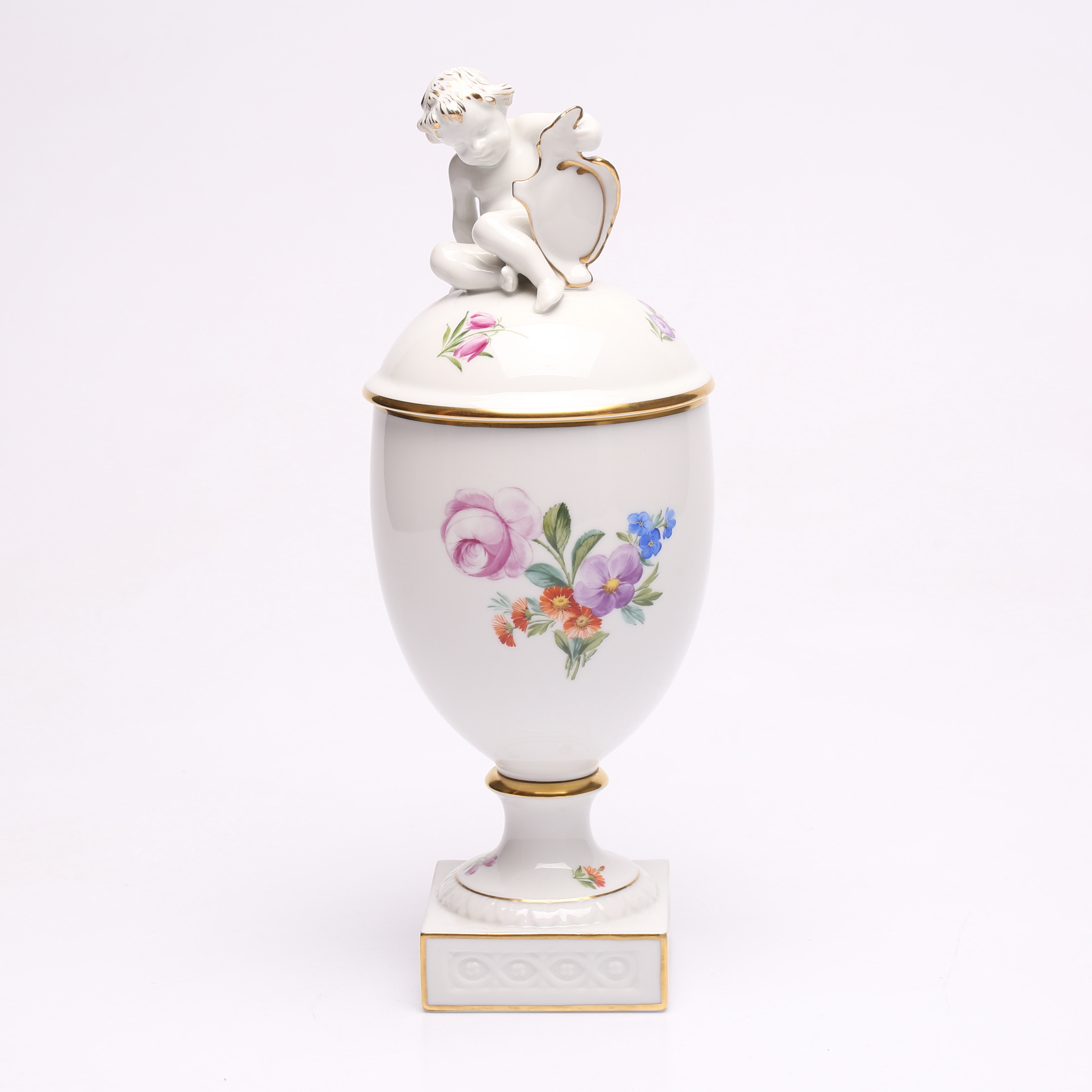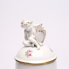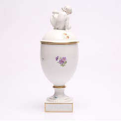 386559 - Фарфоровый кубок с крышкой, декорированный фигурой путти со шитком, максимальная высота 28,5 см, основание 7,5 х 7,5 см, высота по крац 18,5 см, диаметр верха 10 см, 1958 год, RC_493_1754 |