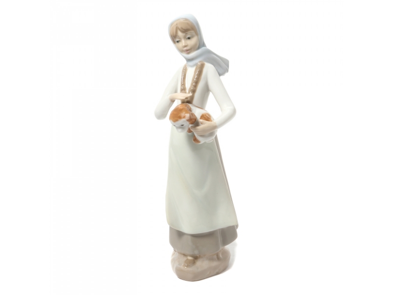 Без сколов, повреждений и без реставраций. =============================== Porcelain figurine "Girl with a puppy". Hand-painted underglaze.