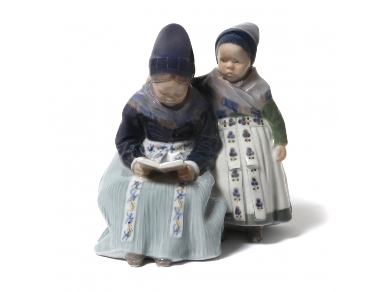 Фарфоровая фигура (статуэтка) "Пара амагерских девочек". Ручная подглазурная роспись.