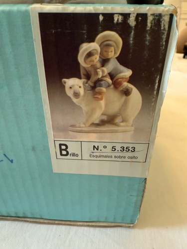 387611 - Дети-эскимосы на белом медведе, высота 16,8 см, основание 12,7 х 7 см, Испания, Lladro