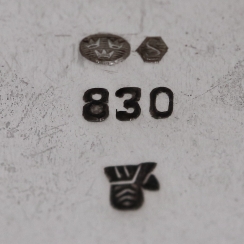 Германия, г. Ханау, мастерская Wilhelm Ludwig (годы работы: 1935-1972). Ввезена в Швецию. Государственное пробирное клеймо Швеции для ввезенных серебряных изделий.