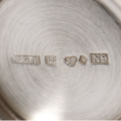 Height: 9.6 cm, base diameter: 2.9 cm, neck diameter: 2 cm. Total weight: 66 grams of silver 830 fineness.
