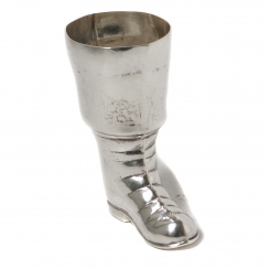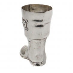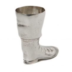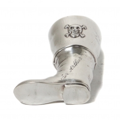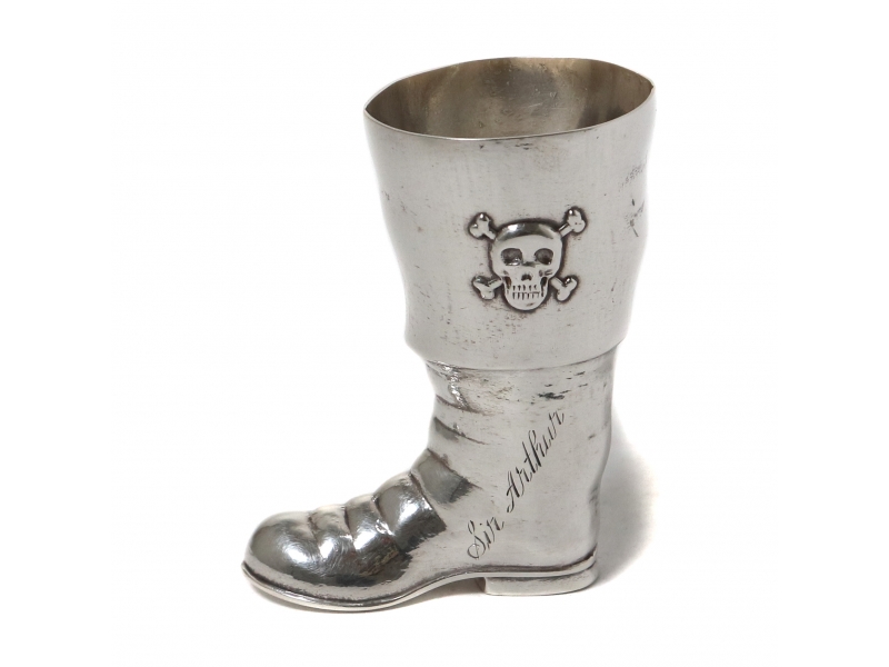 Cеребряная стопка в виде пиратского сапога и изображением черепа с костями.