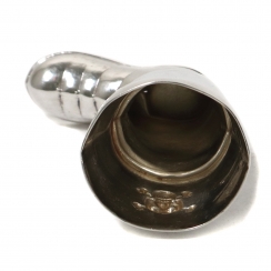 Высота: 7,4 см, длина: 5,2 см, размеры верха: 4 х 3,7 см. Вес: 44 грамма серебра 925 пробы.