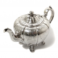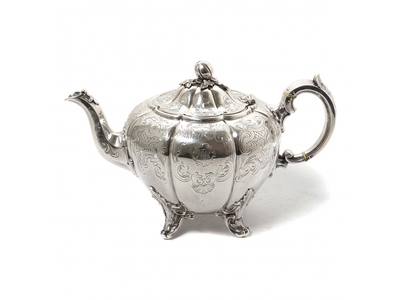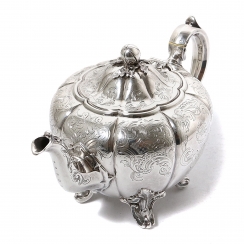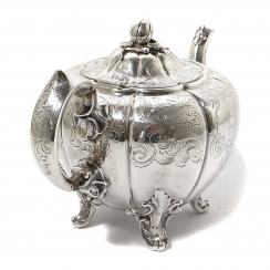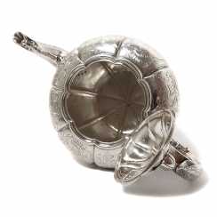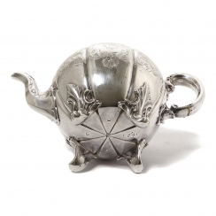 С вензелем. =============================== Silver tea pot, decorated with a floral pattern.