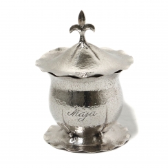 С гравировкой. ========================= Silver bowl with lid, forging.