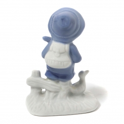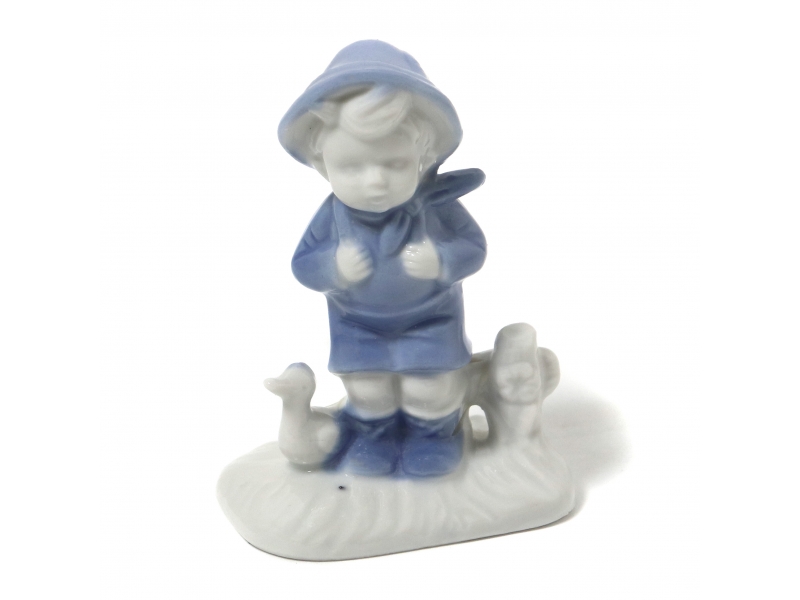Фарфоровая фигура (статуэтка) "Мальчик с рюкзаком и утенком". Ручная подглазурная роспись.