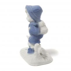 Без сколов, повреждений и без реставраций. ========================== Porcelain figurine "Boy with a backpack and a duckling". Hand-painted underglaze.