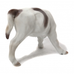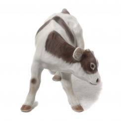 Фигуру продолжали производить также после объединения фабрик Royal Copenhagen и Bing & Grondahl (1985-1989) под брендом Royal Copenhagen, с новым номером модели: 432. ==================================== Porcelain figurine "Calf scratching ear". Hand-painted underglaze.