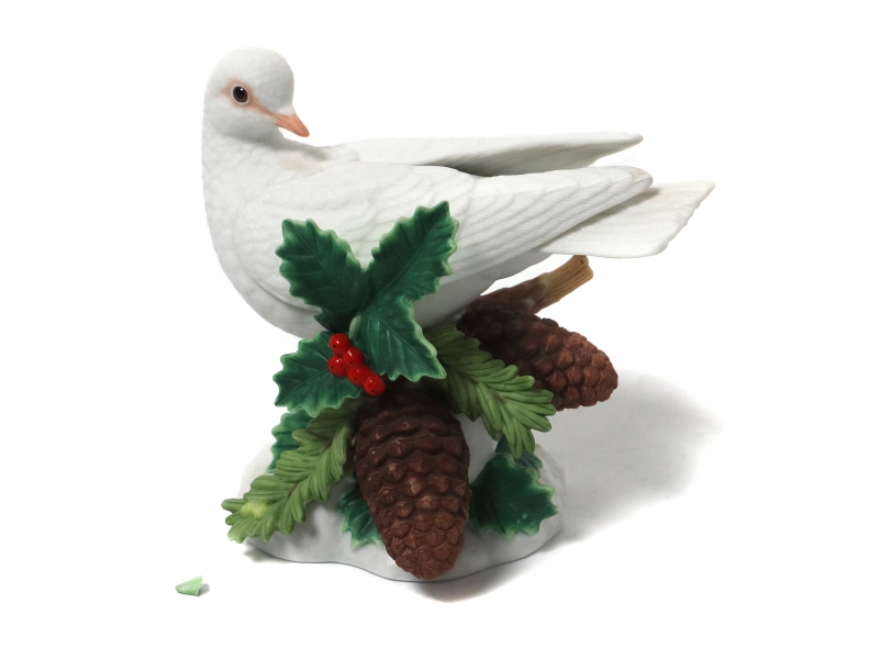 Фарфоровая фигура (статуэтка) "Рождественский голубь". Ручная надглазурная роспись.