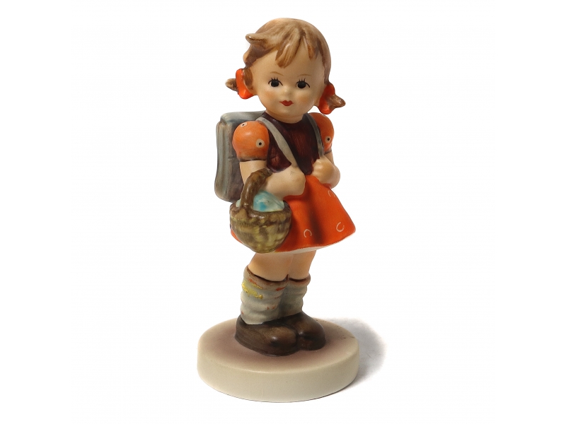 390631 - Девочка с ранцем и корзинкой, высота 11,5 см, диаметр основания 5 см, Германия, Goebel