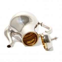 Пробирные российские клейма до 1899 года, где: "АА" - инициалы пробирного мастера Арцибашева Анатолия Аполлоновича (годы работы: 1888-1898); цифра "1893" указывает год клеймения; цифра "84" удостоверяет, что изделие выполнено из серебра 84 золотниковой пробы; "Георгий Победоносец" - клеймо города Москвы. ============================= Small silver coffee pot (chocolate pot).