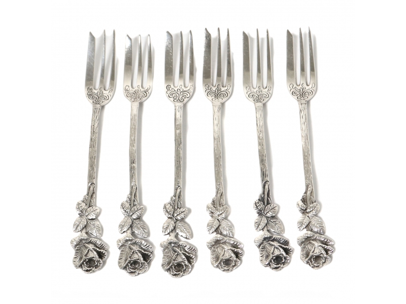 Серебряные десертные вилки, 6 шт. Дизайн "Хильдесхаймская роза (Rose of Hildesheim)".