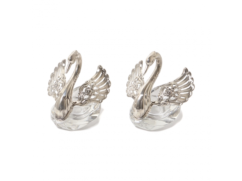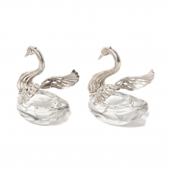 Стекло без сколов. =============================== Pair of salt cellars in the shape of swans. Glass, silver of 835 fineness.
