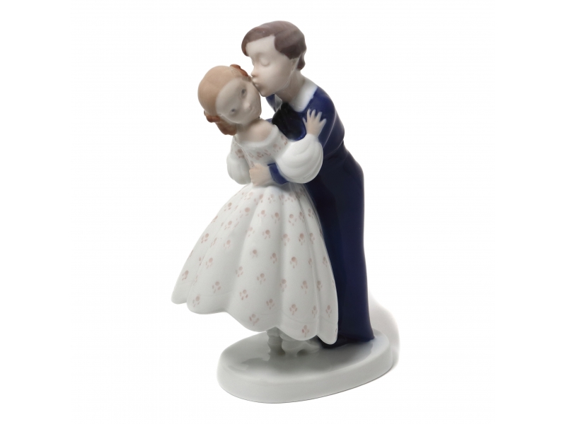 Серия включает следующие статуэтки: Мальчик, целующий девочку (Юношеская смелость), номер модели - 2162. Мальчик, обидевшийся на девочку (Прости меня), номер модели - 2372. Танцующие мальчик и девочка (Танцующая пара), номер модели - 2385. ============================== Porcelain figurine "Youthful boldness". Hand-painted underglaze.