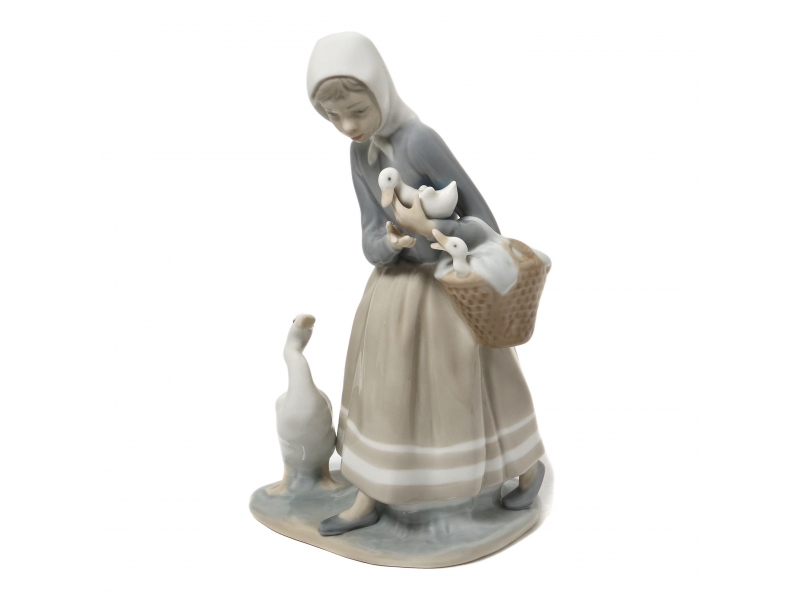 Фарфоровая фигура (статуэтка) "Пастушка с утками". Ручная подглазурная роспись.