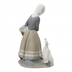 Отколот указательный палец на правой руке. ======================== Porcelain figurine "Shepherdess w/ducks". Hand-painted underglaze.