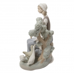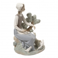 Фарфоровая фигура (статуэтка) "Время кормления (корм для кур)" (Девушка, кормящая птиц). Ручная подглазурная роспись.