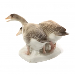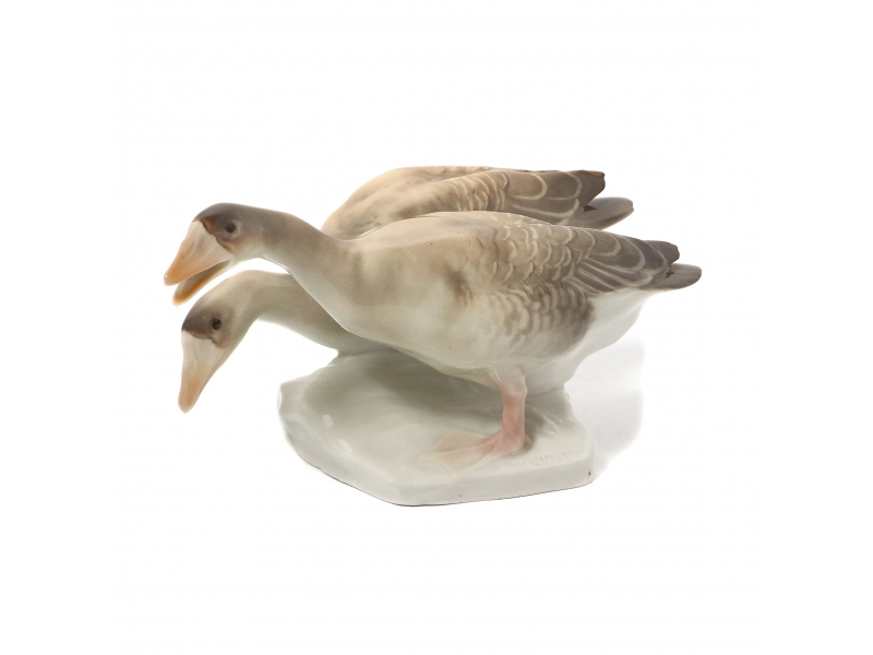 Cкол на кончике хвоста. ============================ Porcelain figurine "Pair of geese". Hand-painted underglaze.