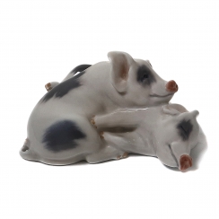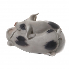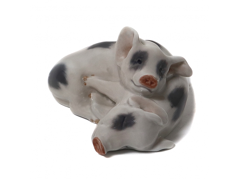 Фарфоровая фигура (статуэтка) "Пара поросят". Ручная подглазурная роспись.