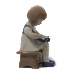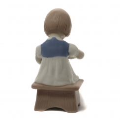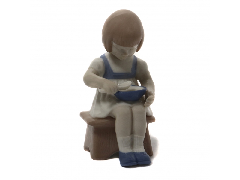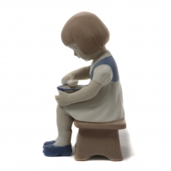 391507 - Девочка на табурете с тарелкой и ложкой, высота 10,5 см, длина 4,5 см, ширина 6 см, Германия