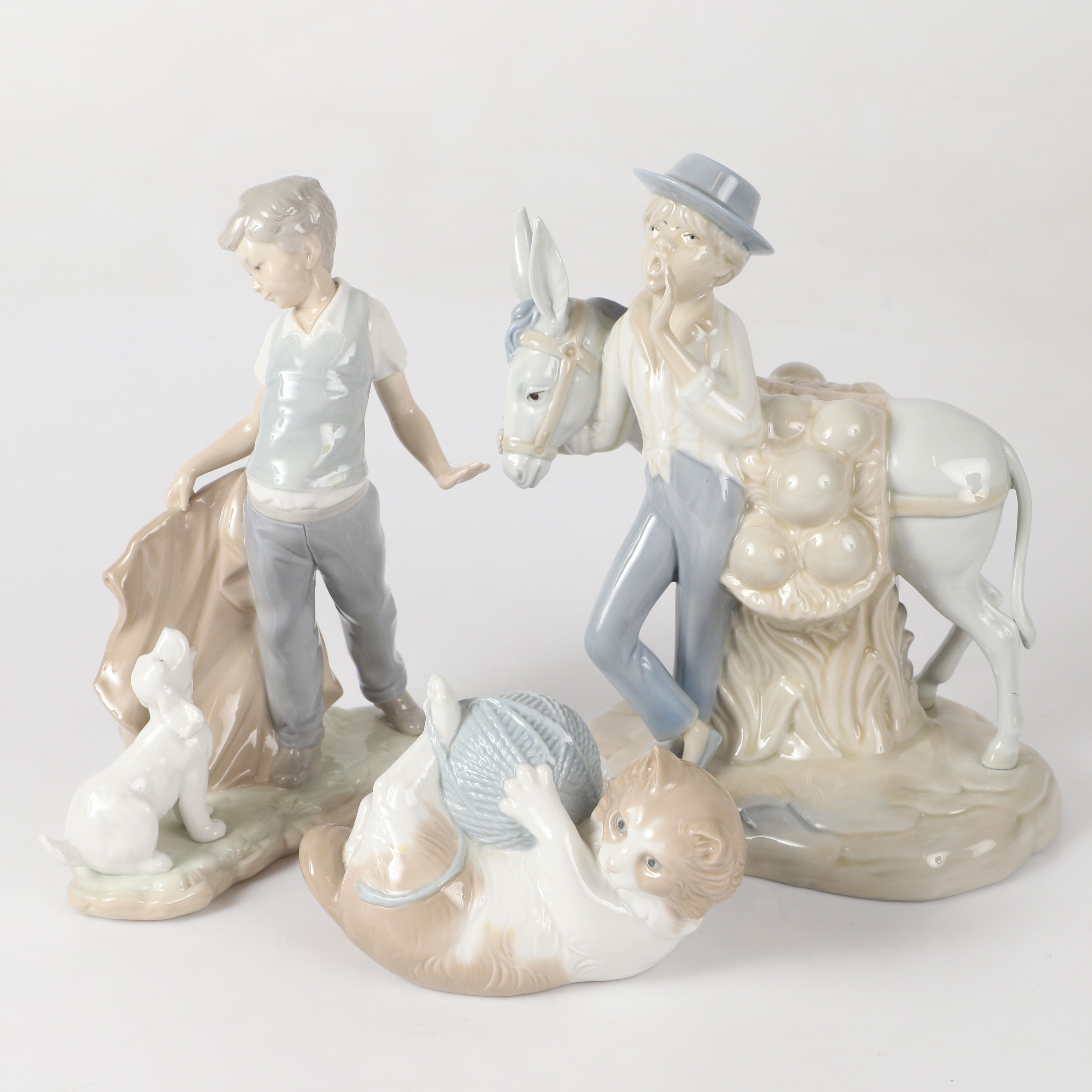 Информация о лоте 273330 - Мальчик с собакой, высота 24 см, длина 17,8 см, ширина 9,5 см, Испания, NAO by Lladro 325273 - Кошка с клубком, высота 9,5 см, длина 15,5 см, Испания, NAO by Lladro 330602 - Мальчик с ослом (продавец ?), высота 24,5 см, основание 19,5 х 12 см, Испания |